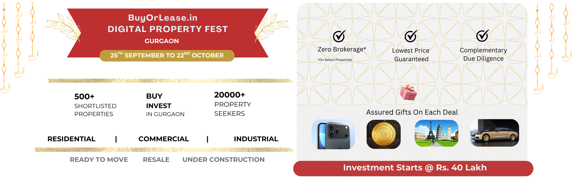 - "Zero Brokerage", "15 gram Gold Coin", "BuyorLease Gift Hamper" Offer Zone