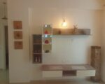 Semi-furnished with modular kitchen, wardrobes, geyser, fans, exhaust fan, microwave, and curtains