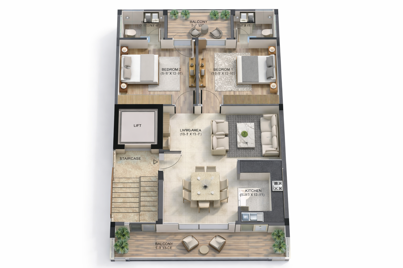 -Spacious balconies and natural light flow