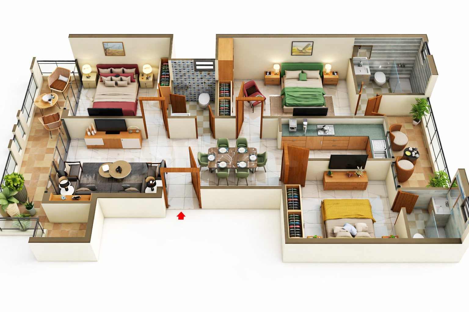 -Well-planned bedrooms and modern kitchens